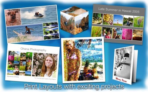 Awesome Print & Layouts projects, including photo mosaics (with built-in Photo Mosaic generator), photo cubes, greeting cards, mini photos books and much more.