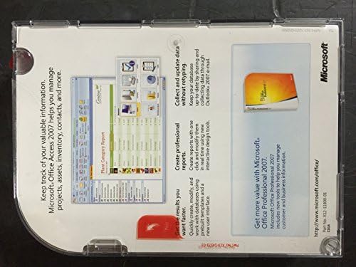 Microsoft Office Professional 2007 Version Upgrade is a complete suite of productivity and database software that includes the 2007 versions of Publisher, Excel, Outlook, Outlook with Business Contact Manager, PowerPoint, Access, and Word. Powerful contact management features help you consolidate all customer and prospect information in one place, while improved menus present the right tools exactly when you need them.