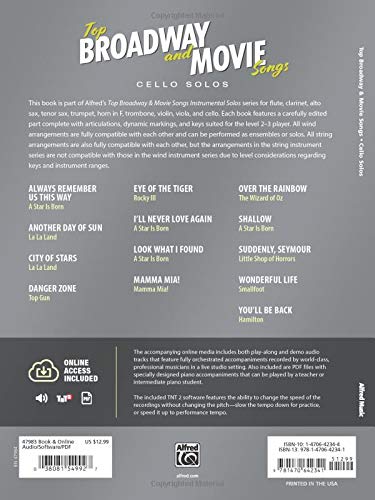 Be the first to review “Top Broadway & Movie Songs Instrumental Solos: Cello Solos, Book & Online Audio/Software/PDF (Pop Instrumental Solos Series)”
